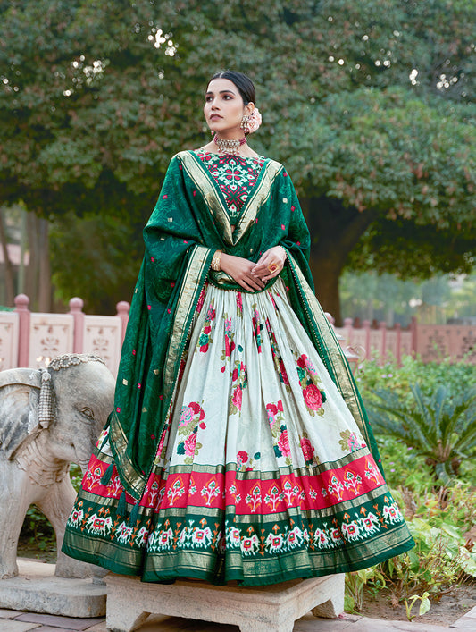 Exquisite Floral Fantasy: Tusser Silk Lehenga Choli with Intricate Print and Dupatta