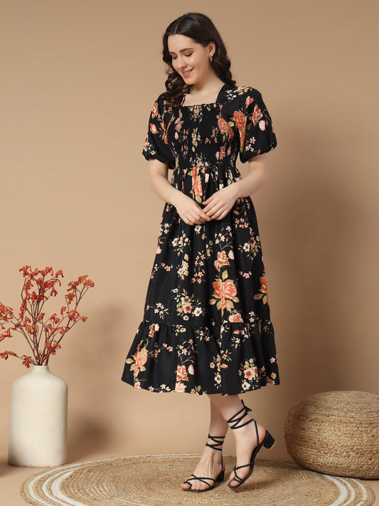 Regular price $78.99Regular priceUnit price per$105.00Sale price $78.99Turn heads in this black dress with a playful twist - a stunning green and red flower print! Versatile yet eye-catching, this dress is perfect for any occasion. Make a statement and stand out in style!